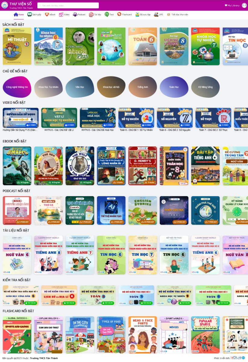 Ebook: Nhà trường cung cấp Ebook bộ sách giáo khoa, Ebook sách giáo viên mà trường đã chọn lựa và các Ebook học tiếng Anh bằng AI hay eBook tham khảo lên thư viện số để học sinh và giáo viên tham khảo khi không mang sách giấy bên cạnh.